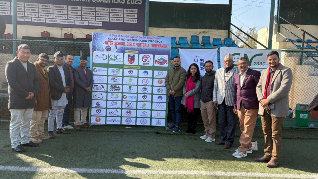 Lalitpur — As part of the 16 Days of Activism Against Gender-Based Violence, Children as Zones of Peace (CZOP) National Campaign proudly stood in solidarity at the Girls and Women Kick Project, organized by Child Nepal with the support of the FIFA Foundation at ANFA Ground, Satdobato, Lalitpur.